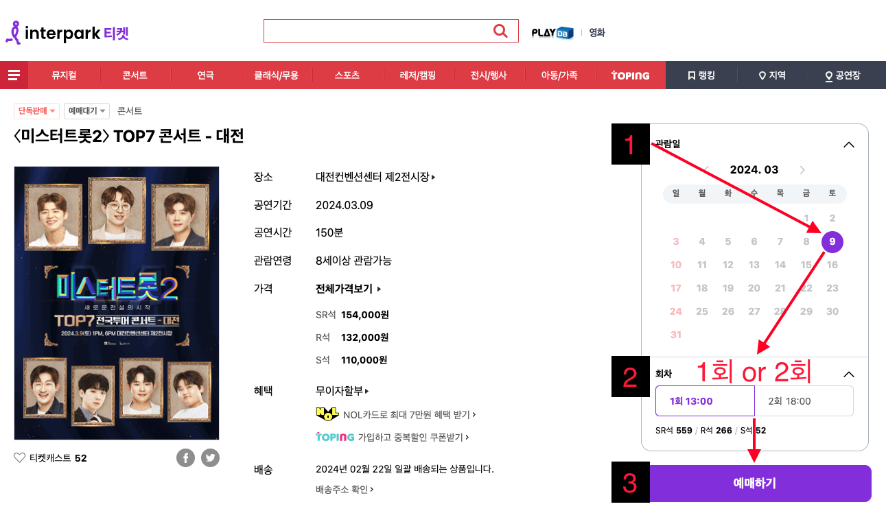 - 티켓 가격: SR석 154,000원 / R석 132,000원 / S석 110,000원