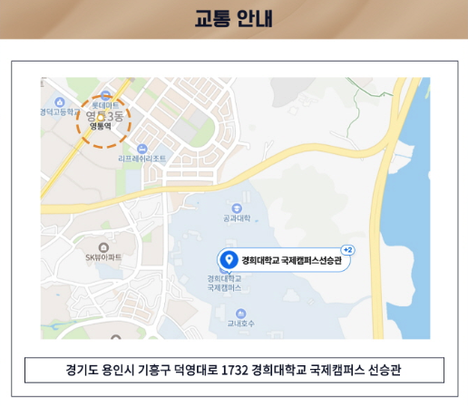 ※ 경희대학교 국제캠퍼스 선승관 (경기도 용인시 기흥구 덕영대로 1732 경희대학교 국제캠퍼스 선승관)