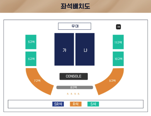 - 일부 좌석은 무대 연출 및 아티스트의 위치에 따라 안전펜스 및 콘솔, 출입문 위치, 무대구조물, 장치, 카메라 등으로 인해 시야가 방해가능.(이로인한 티켓 취소, 교환, 환불은 불가)