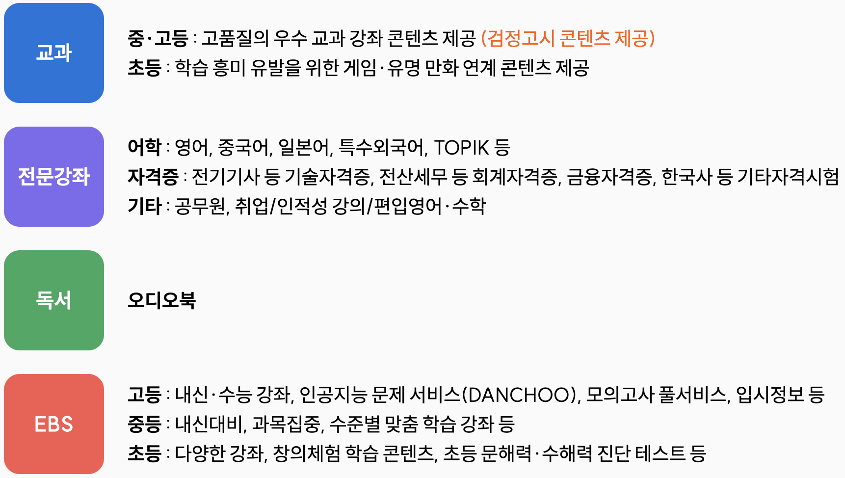 * 학습자원 접근이 어려운 청소년들에게 다양한 교과•비교과, 공공연계 학습콘텐츠를 온라인으로 제공