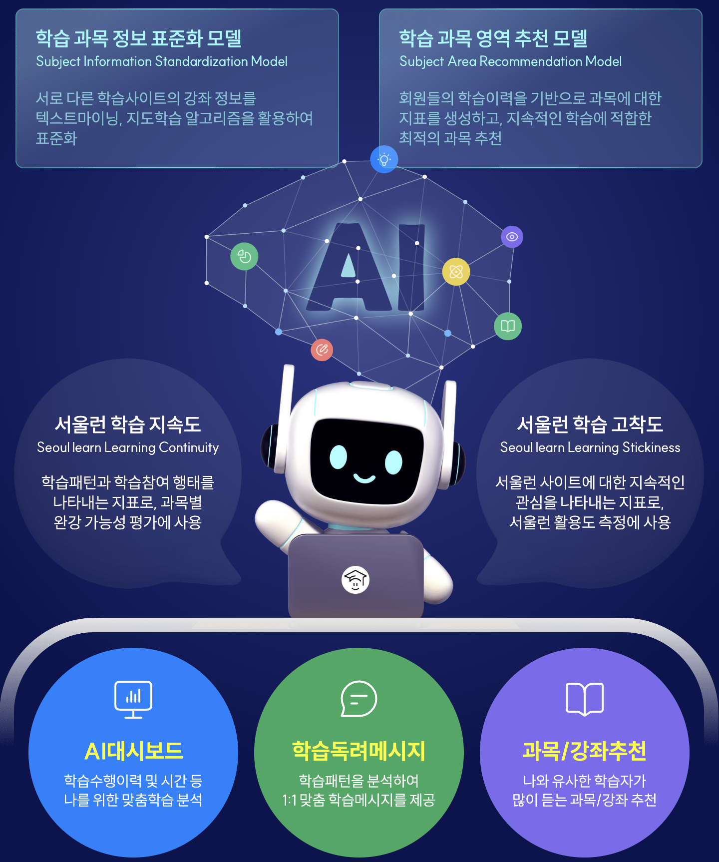 ◦ AI가 학습패턴을 분석하고 학생이 스스로 공부할수 있도록 그에 맞는 교과/비교과 강좌를 추천
