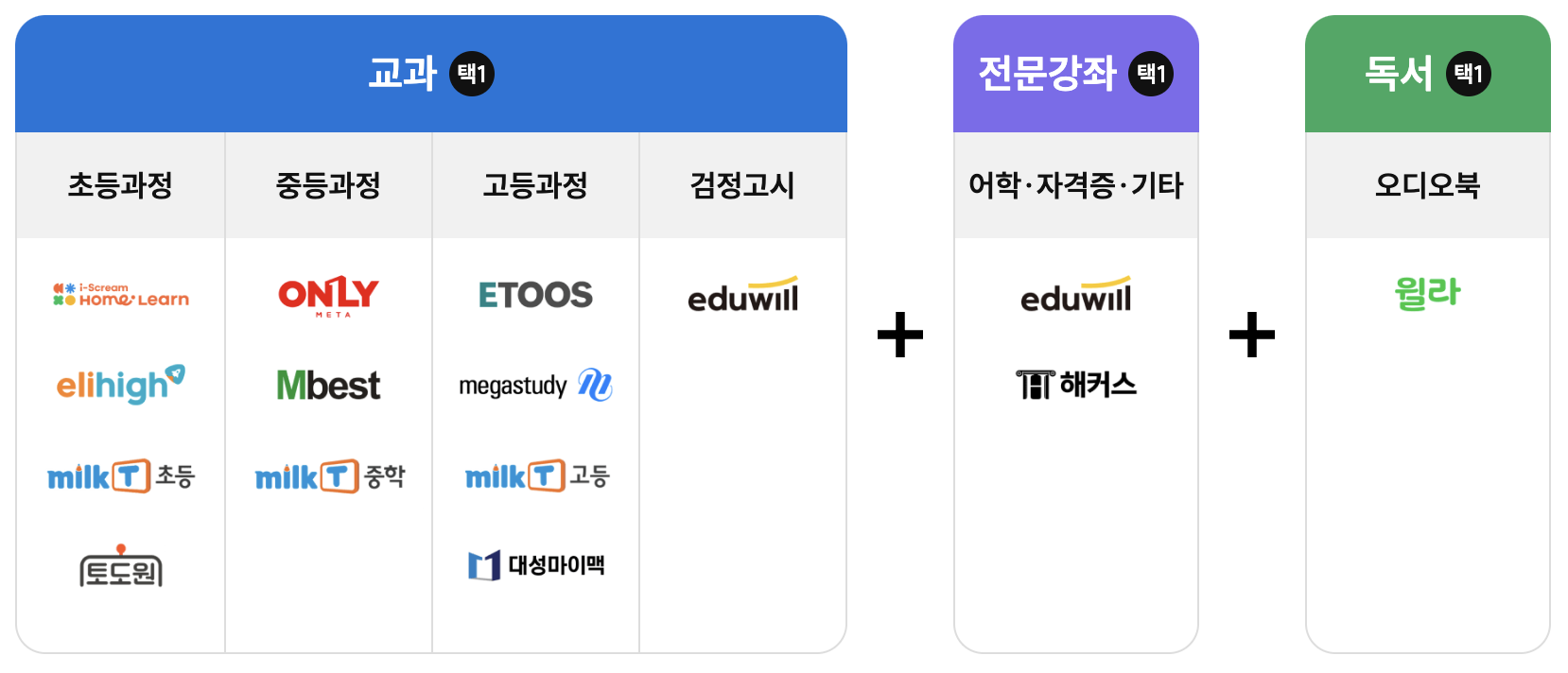 ◦ 학습사이트별 일반 회원에게 제공되는 모든 콘텐츠(종합반수준) 무제한으로 이용가능