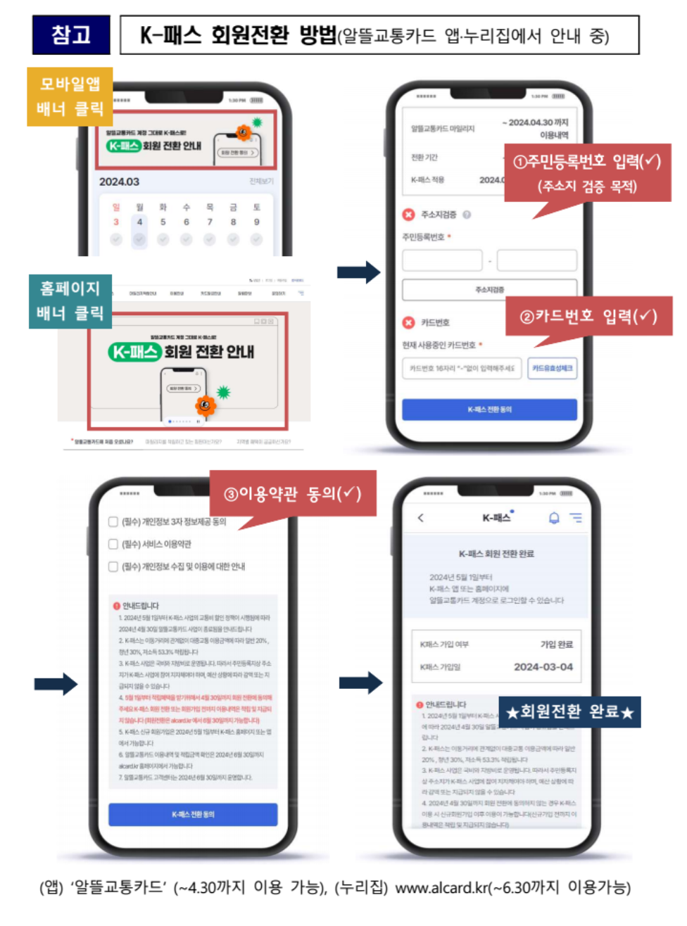 ◦ 기존 알뜰교통카드 사용자는 별도 카드 재발급 없이 기존 교통카드 그대로 사용가능