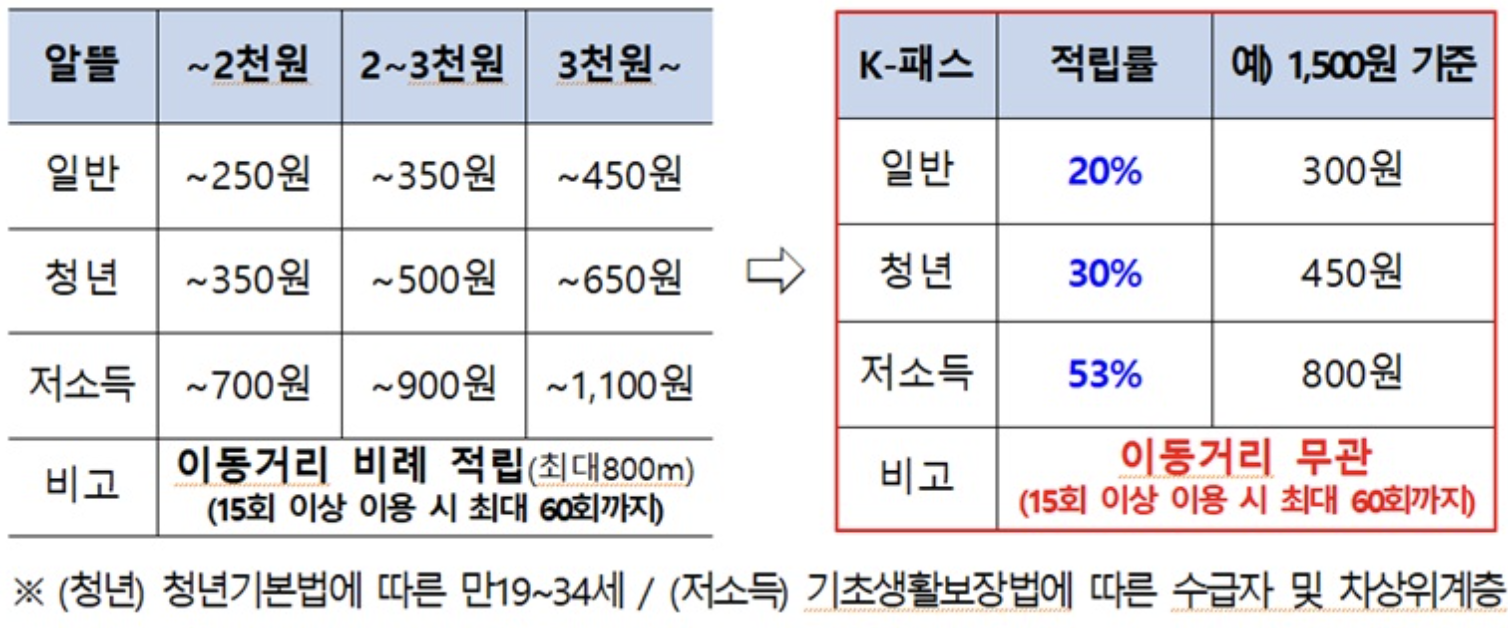 ◦ K-패스는 지출금액에 따라 환급이 되고 '이동거리 기록'을 하지 않는다.